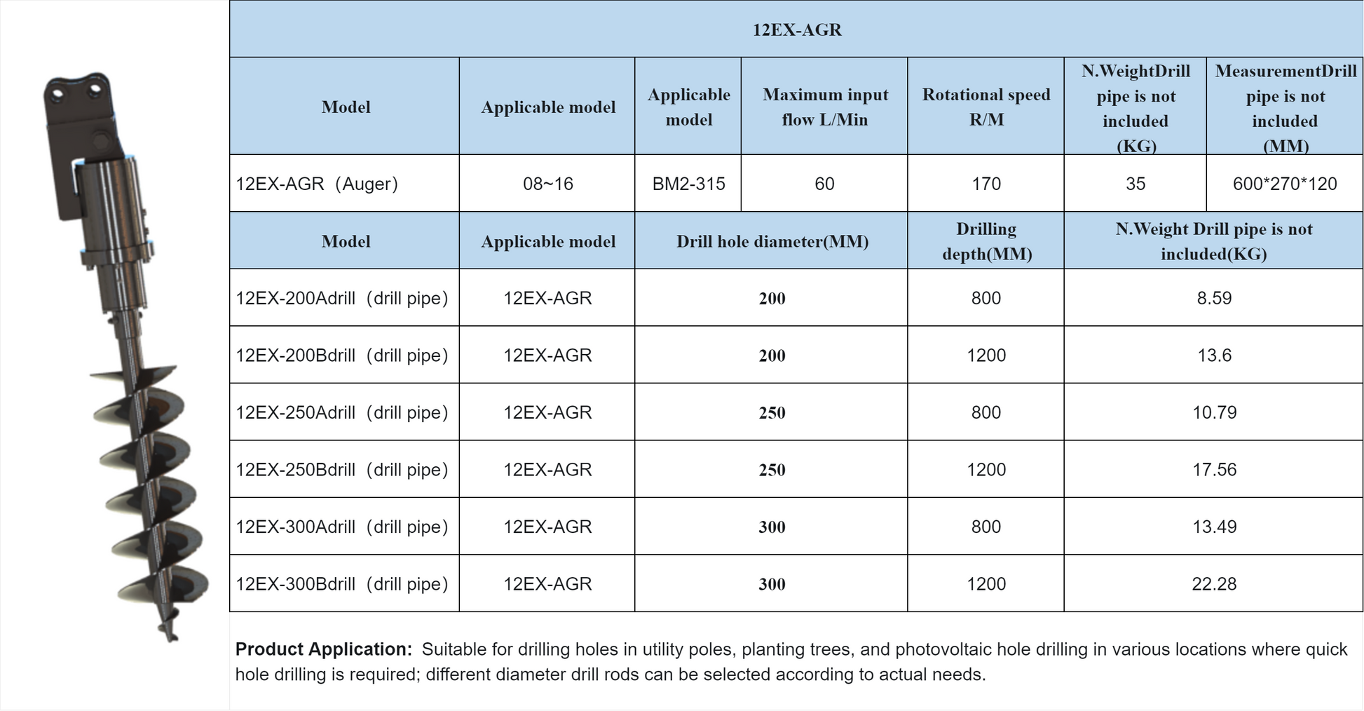 Auger For AGT Mini Excavator 12EX-AGR